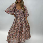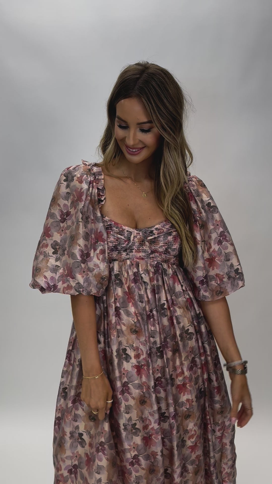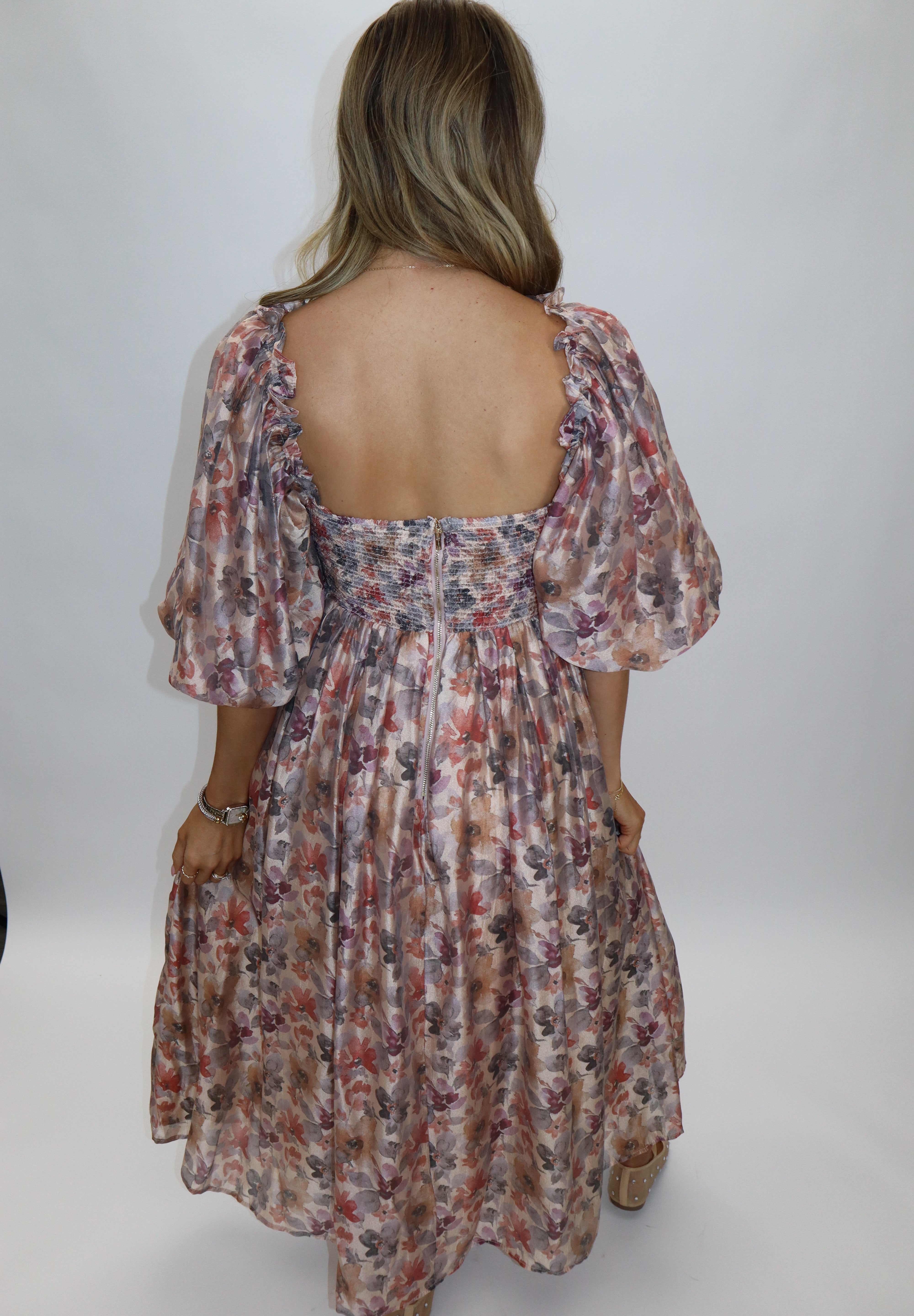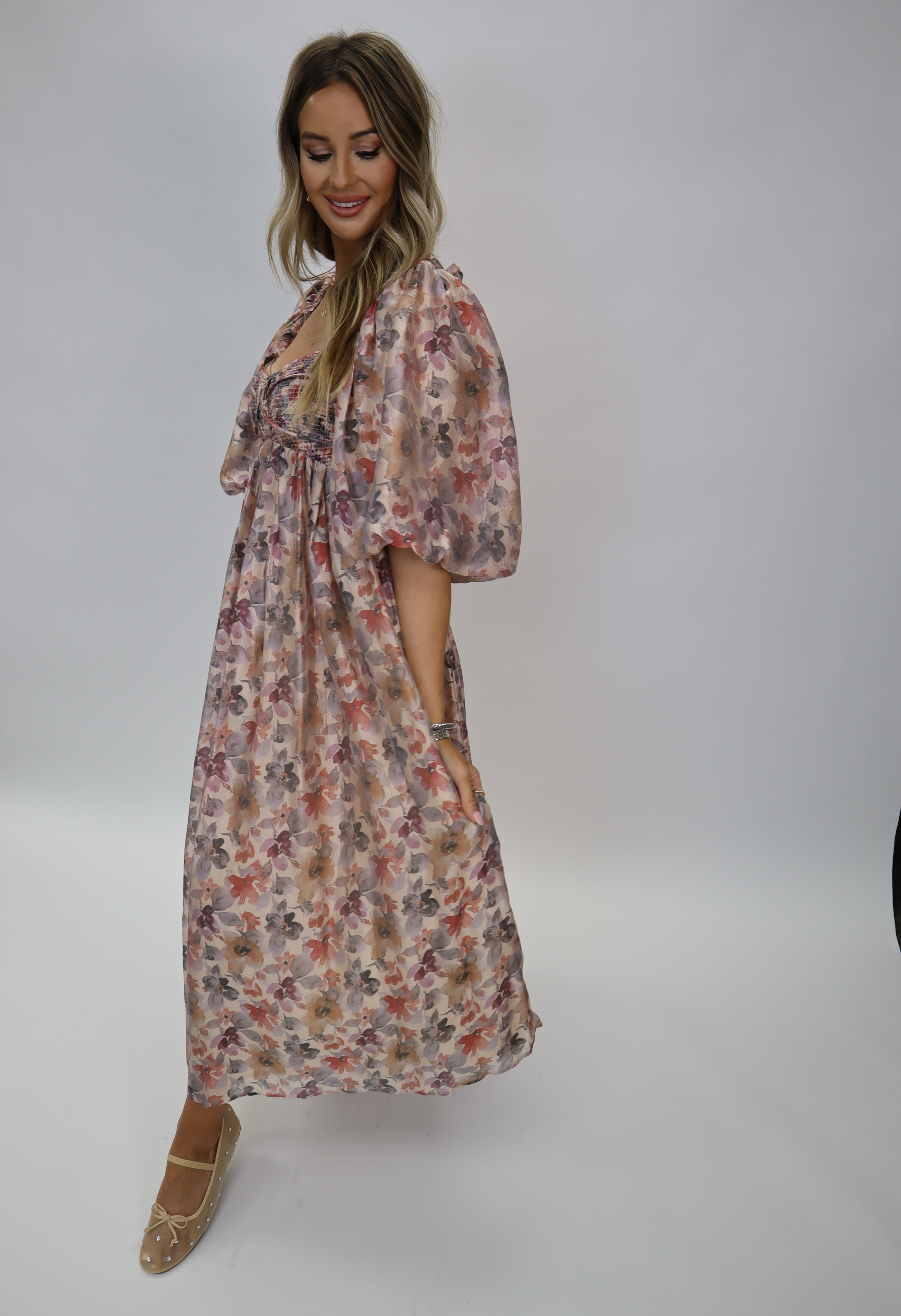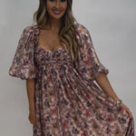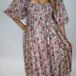 This Falling for Florals Dress offers a versatile and stylish option for your wardrobe. The floral pattern adds a touch of femininity, while the puff sleeves and flowy cut provide a comfortable and effortless fit. Made with organic materials, this dress is not only fashionable but also environmentally friendly. Perfect for any occasion, it's a must-have transitional piece.