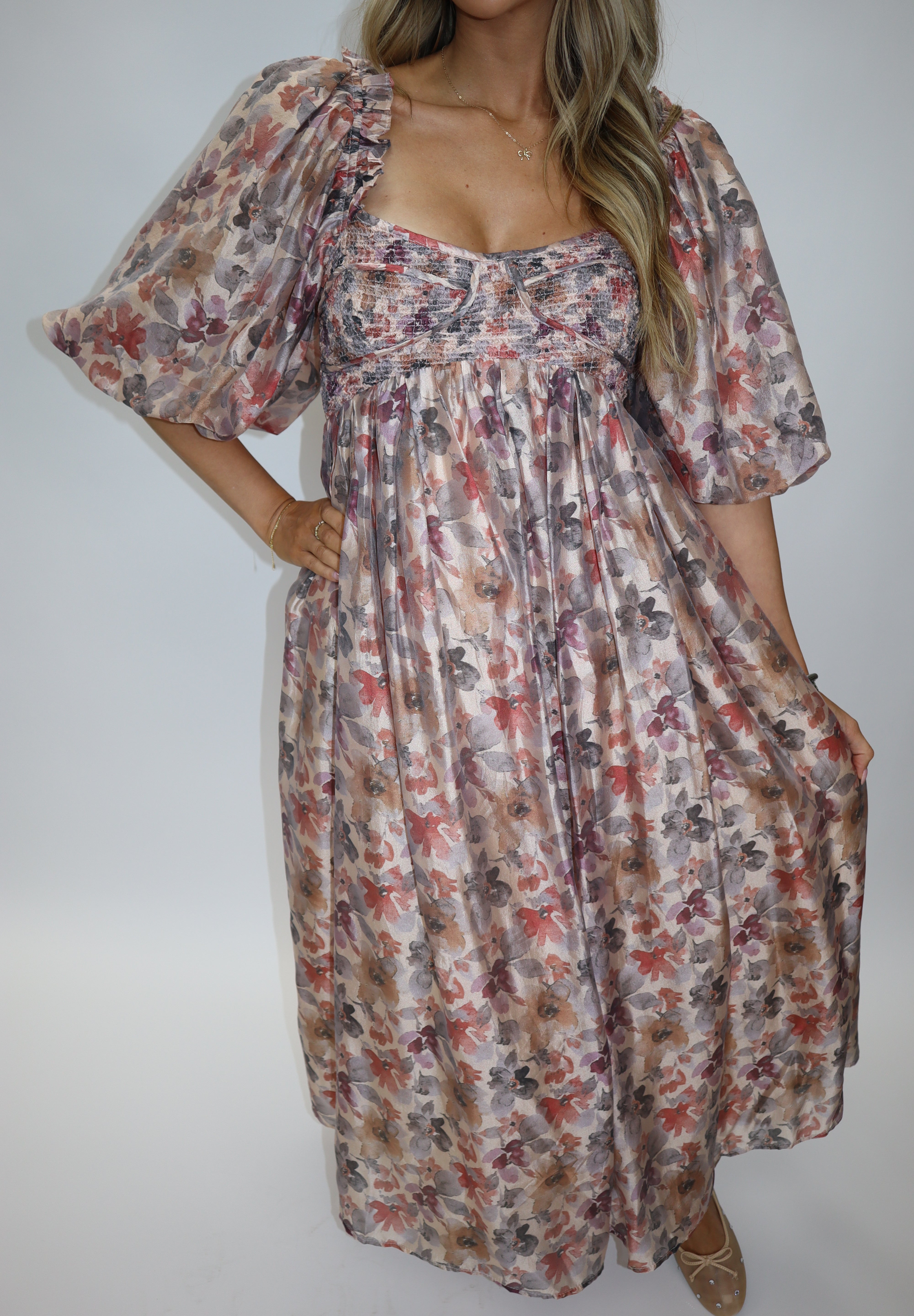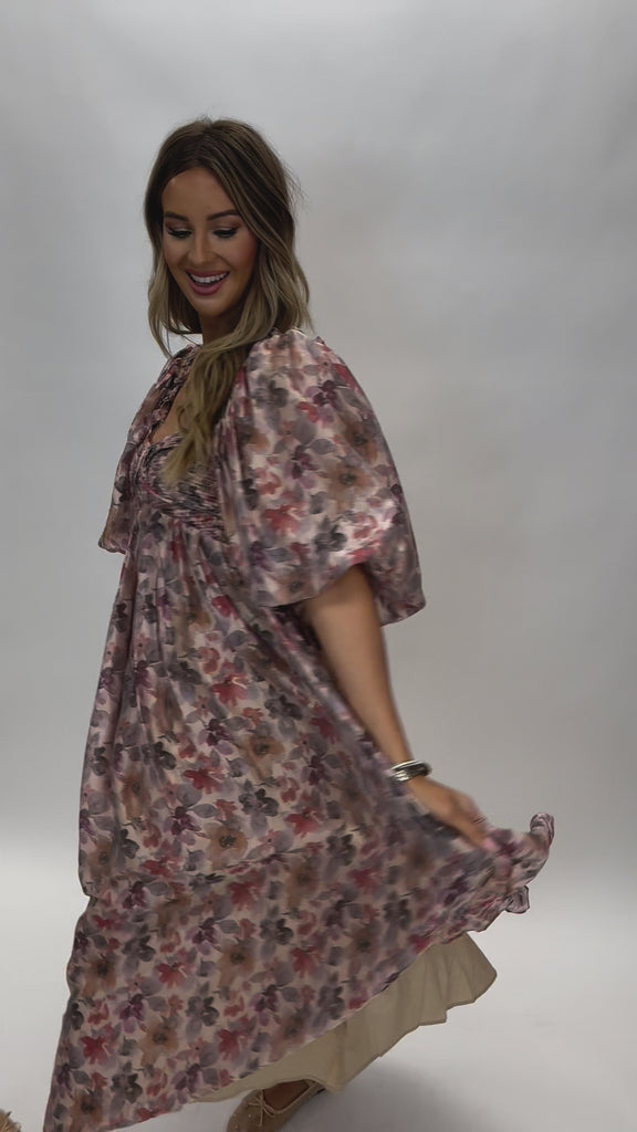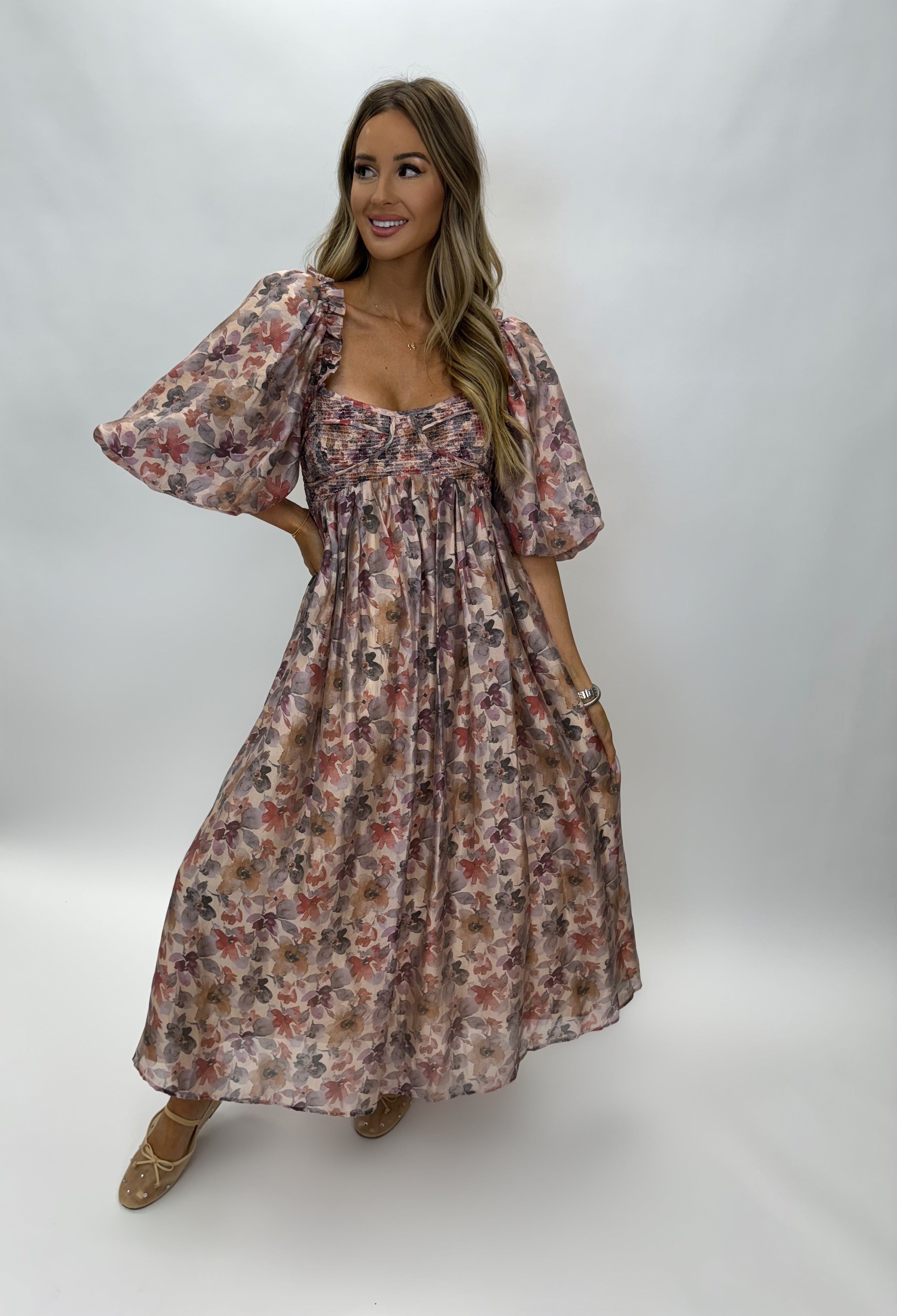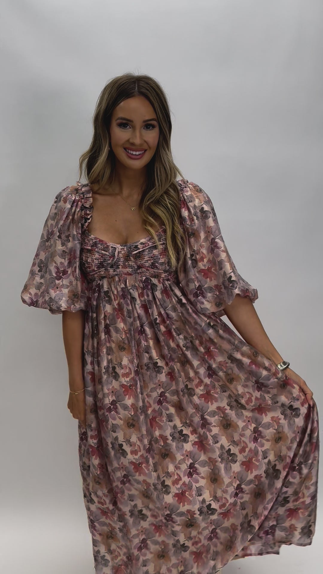 This Falling for Florals Dress offers a versatile and stylish option for your wardrobe. The floral pattern adds a touch of femininity, while the puff sleeves and flowy cut provide a comfortable and effortless fit. Made with organic materials, this dress is not only fashionable but also environmentally friendly. Perfect for any occasion, it's a must-have transitional piece.